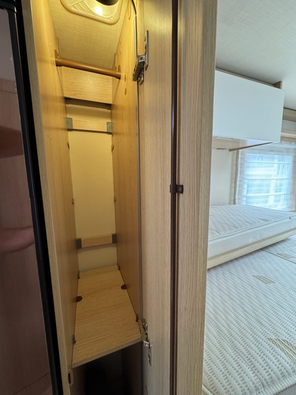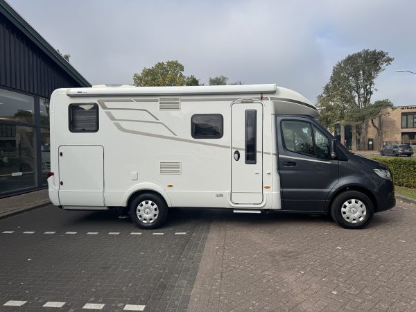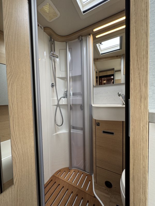 De Hymer is verder voorzien van een Dometic dakairco met geïntegreerd dakraam, waardoor het altijd aangenaam koel en licht is. Dankzij het automatische hydraulische levelsysteem staat de camper in een handomdraai stabiel en waterpas, waar u ook overnacht. De ruime garage biedt volop plek voor fietsen of extra bagage, ideaal voor wie graag actief op pad gaat. Met een technisch toelaatbare massa van 4.430 kg en een rijklaar gewicht van 2.900 kg is dit model zowel met rijbewijs B groter rijbewijs besturen, wat veel flexibiliteit geeft.