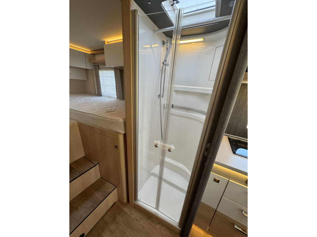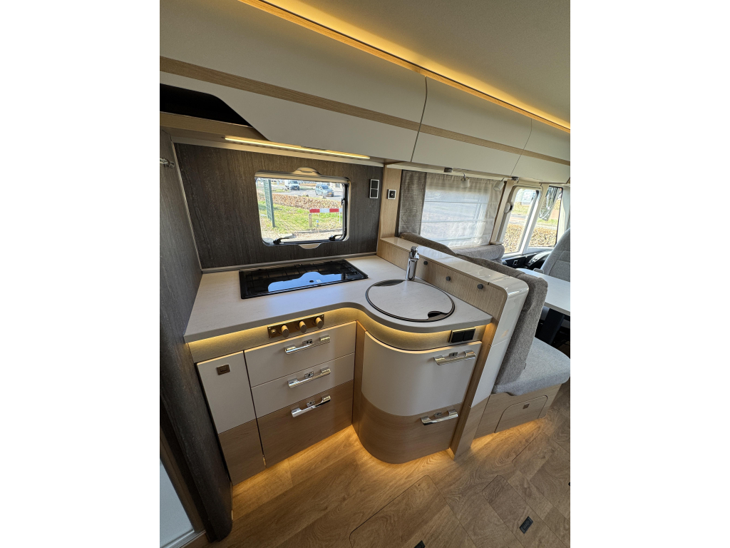 Daarnaast is deze camper voorzien van luxe opties zoals een 32" televisie met elektrische lift, ALDE circulatieverwarming, buitengasaansluiting en nog veel meer.
