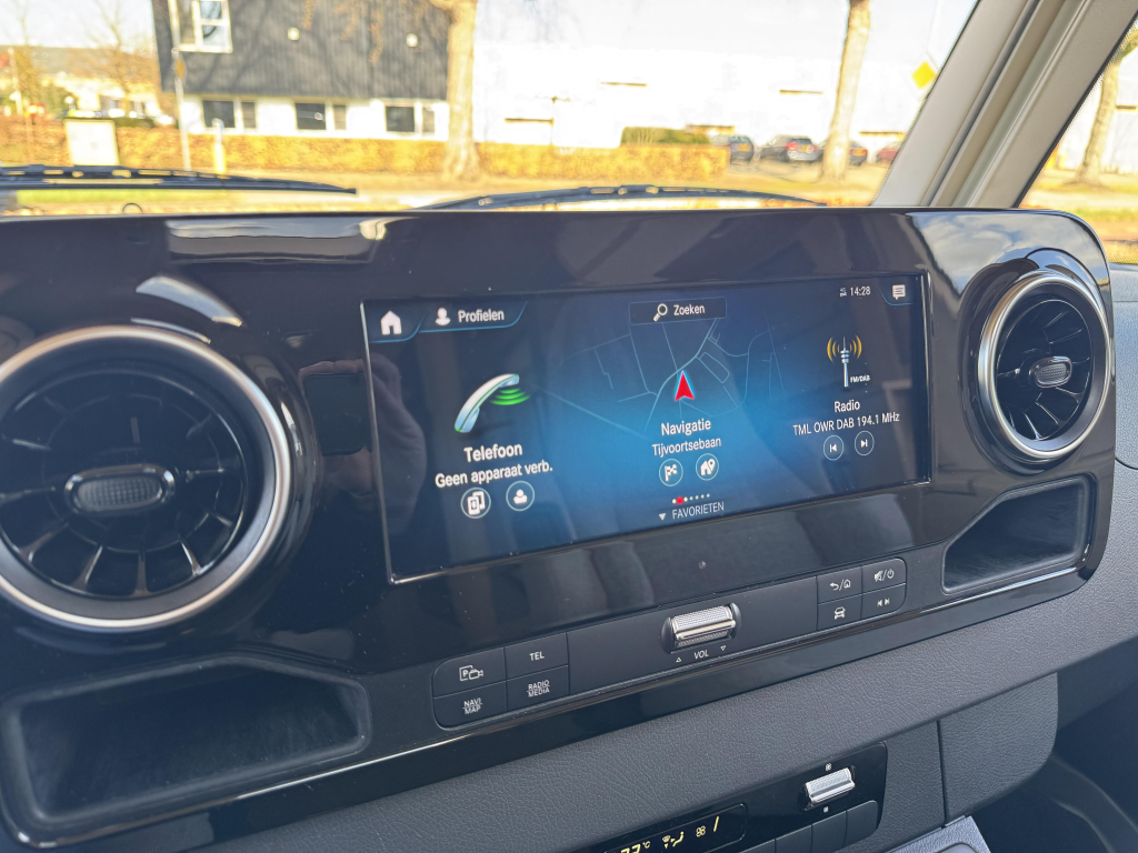 Het dashboard/ cabine beschikt over het luxe Mercedes MBUX multimediasysteem incl. navigatie met bediening op stuurwiel, touchscreen en achteruitrijcamera, cabineairco, bestuurders- en bijrijdersairbag, elektrisch bedienbare spiegels en raam.