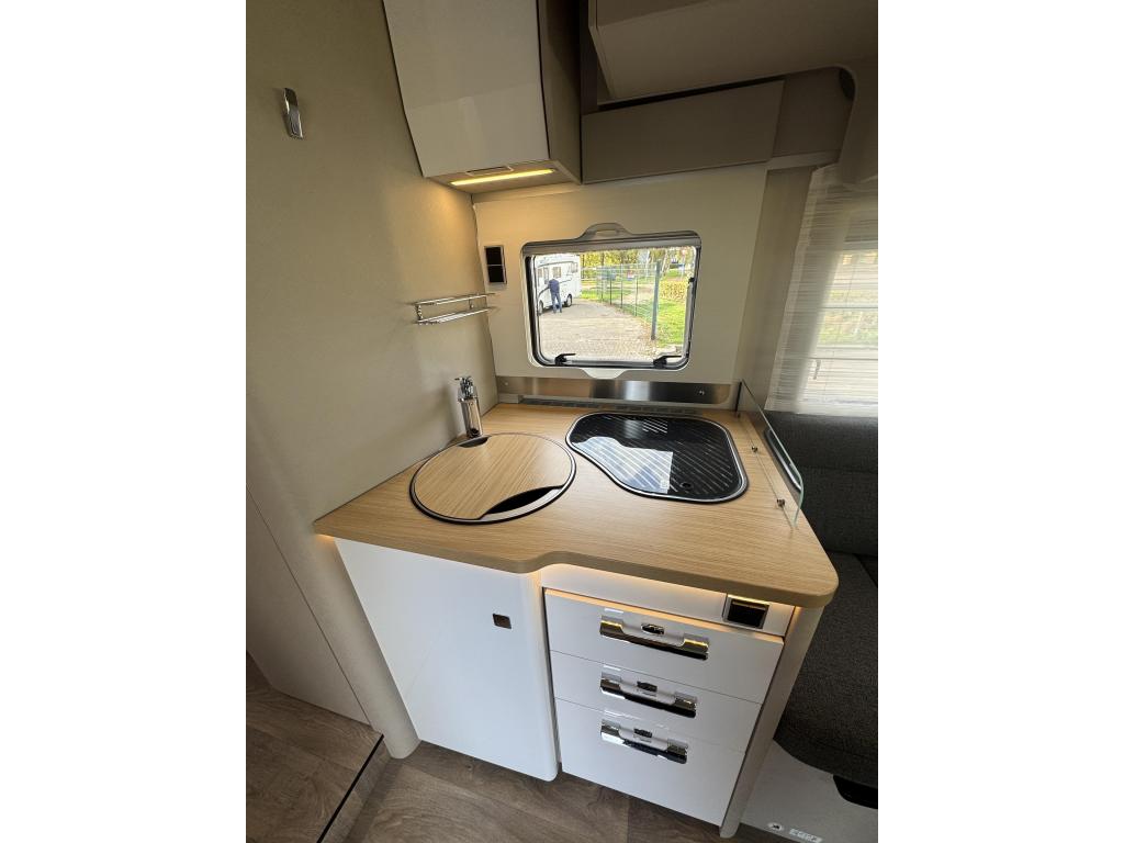 De Hymer is compleet, zo beschikt de camper bijvoorbeeld over een grote compressorkoelkast met vriesvak. De ruim geïntegreerde cabine met face-to-face zit schept ruimte voor 6 zitplaatsen!