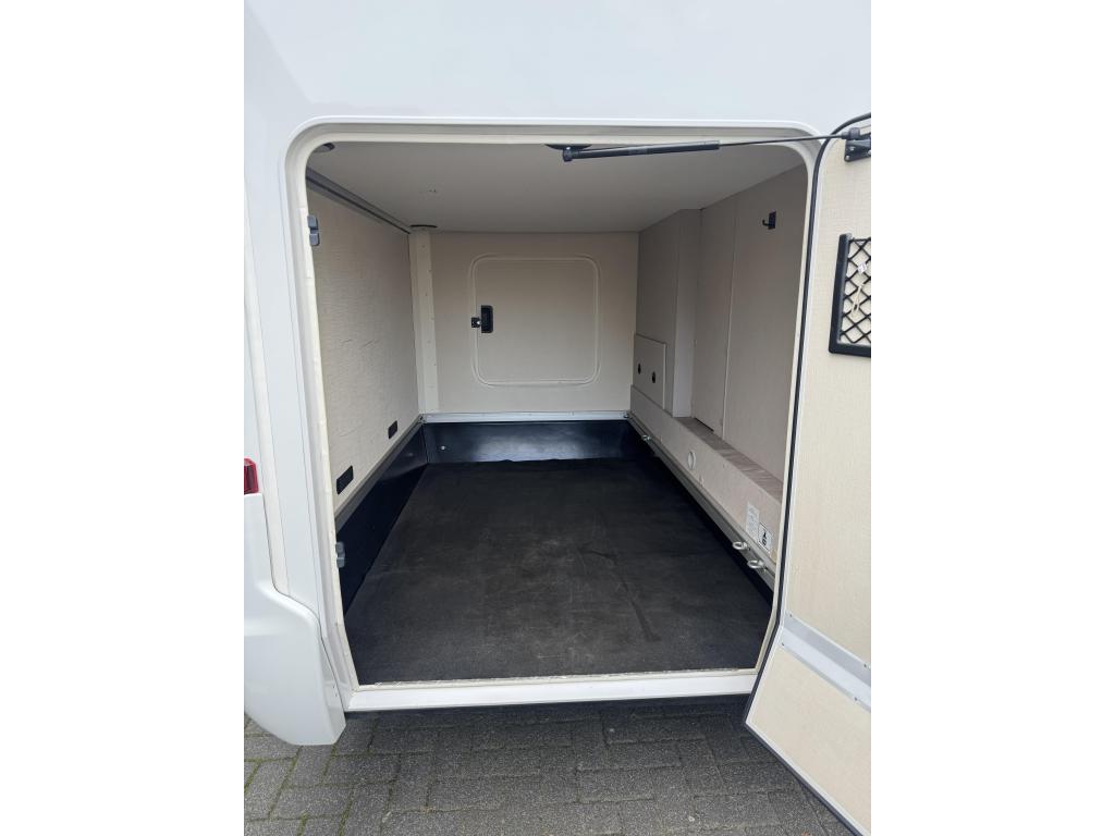 De grote garage achterin biedt voldoende opslagruimte voor al de dingen die u niet wilt missen tijdens uw camper-vakantie.