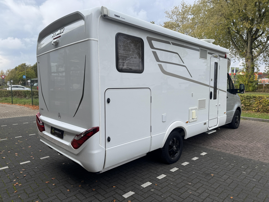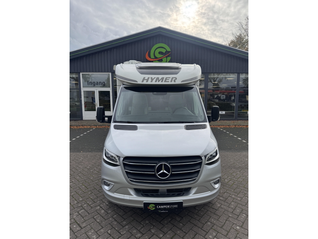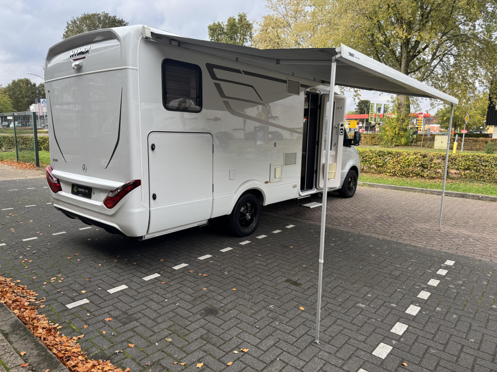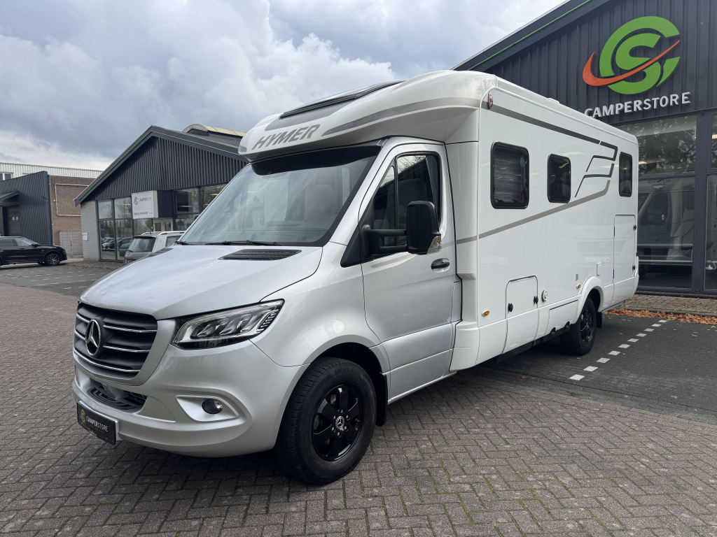 De Hymer is voorzien van luxe opties als twee zonnepanelen, een 32”inch televisie, Hymer Smart Battery System, fietsendrager in de garage.