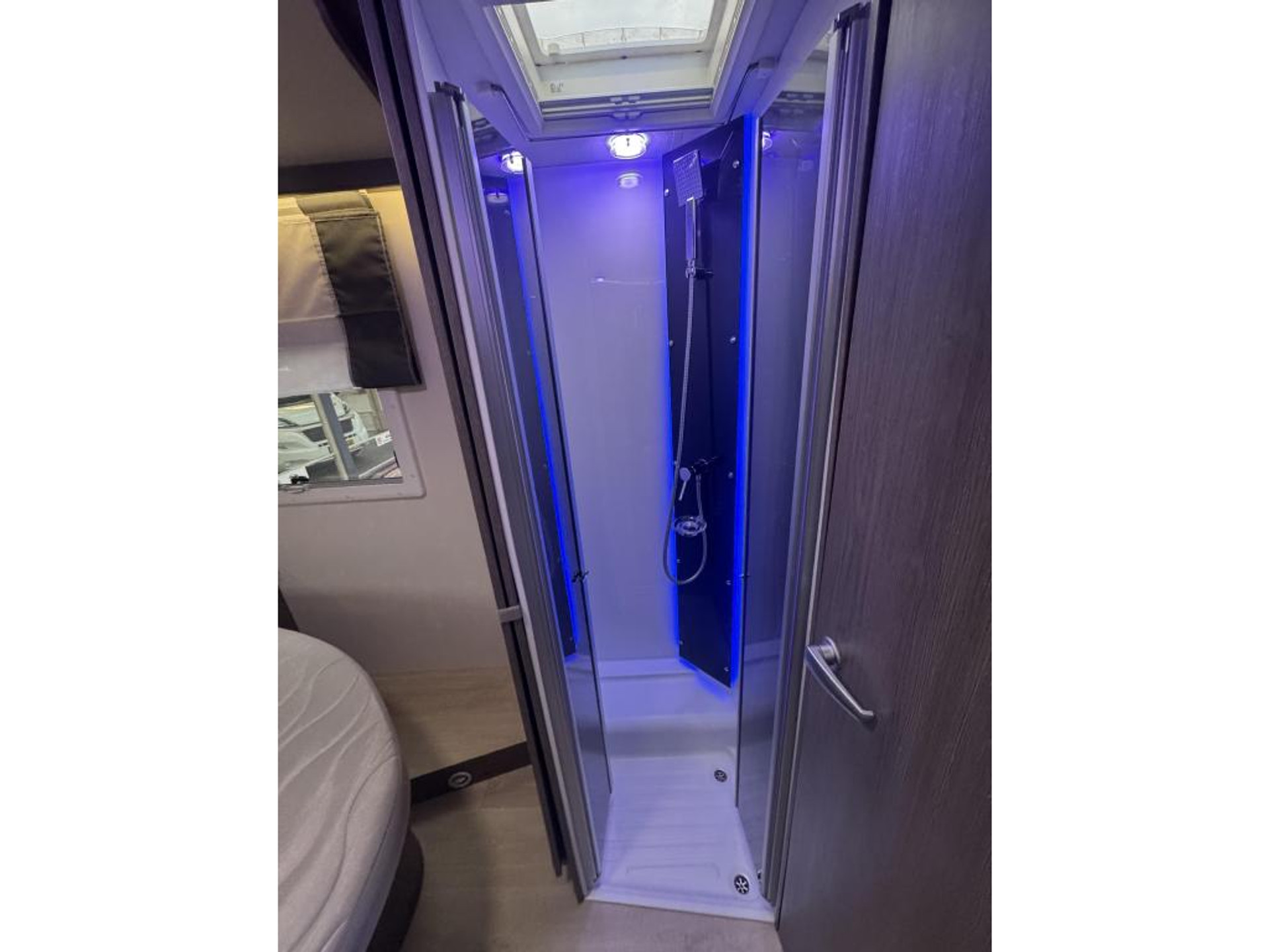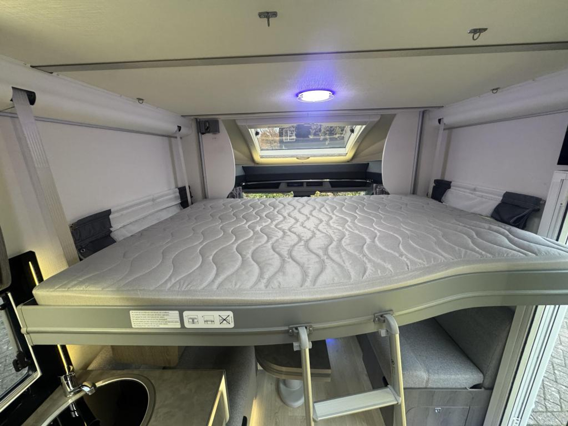 - Gezellige face to face zit met panorama dakluik en draaibare pilotenstoelen, dubbele armleuningen in hoogte verstelbaar