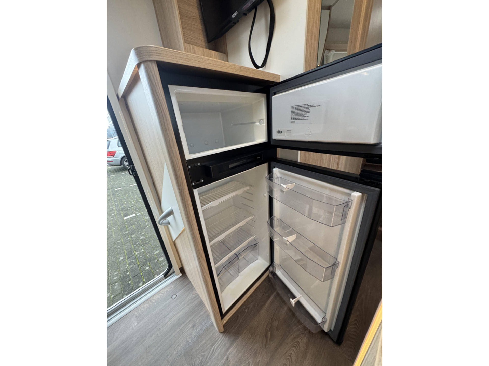 - Koelkast werkt zowel op 12 volt als op 220volt als op gas (handmatig/ automatisch in te stellen)