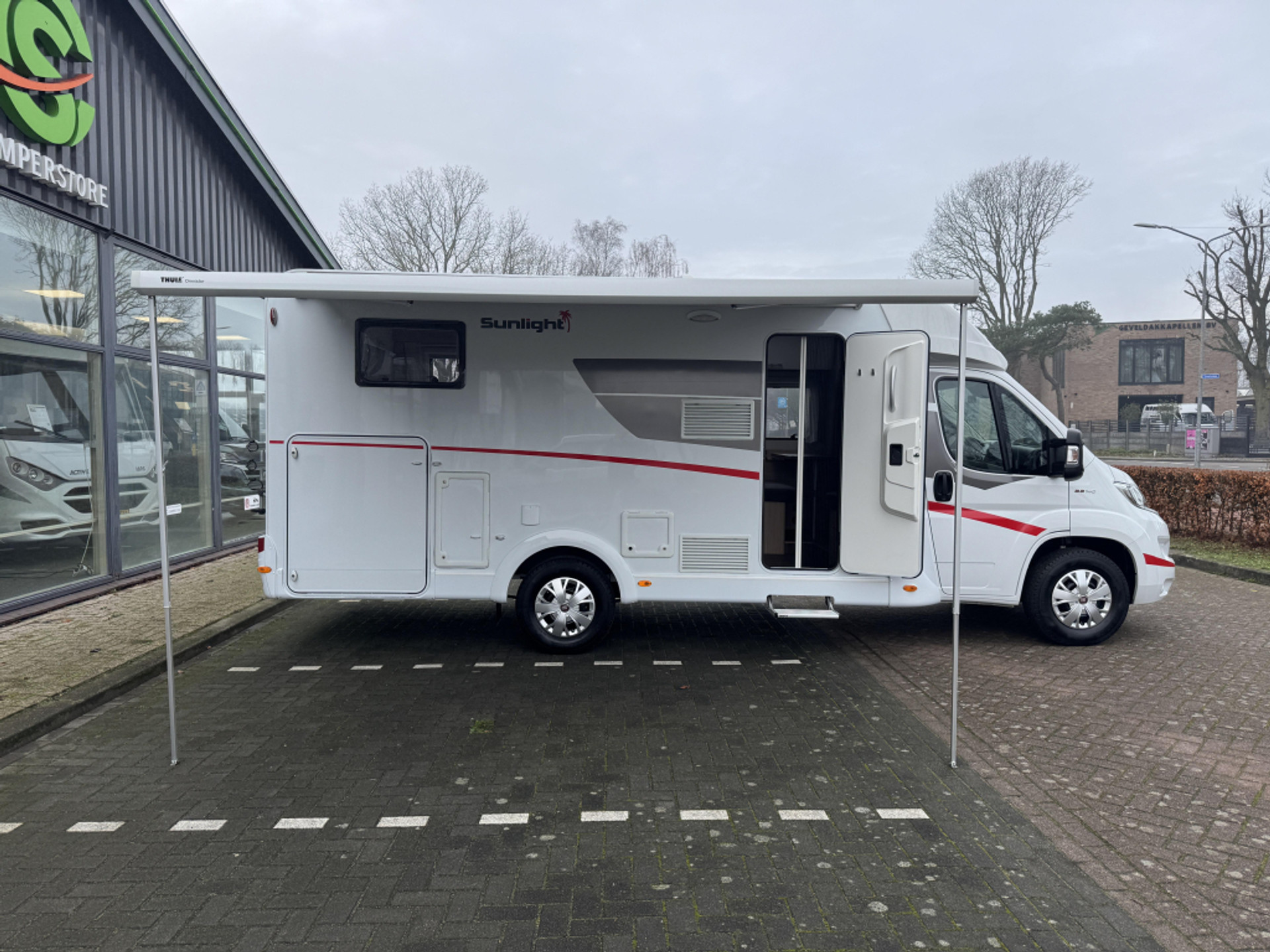 - Dakluiken in woon-, slaapgedeelte en douche- en toiletruimte