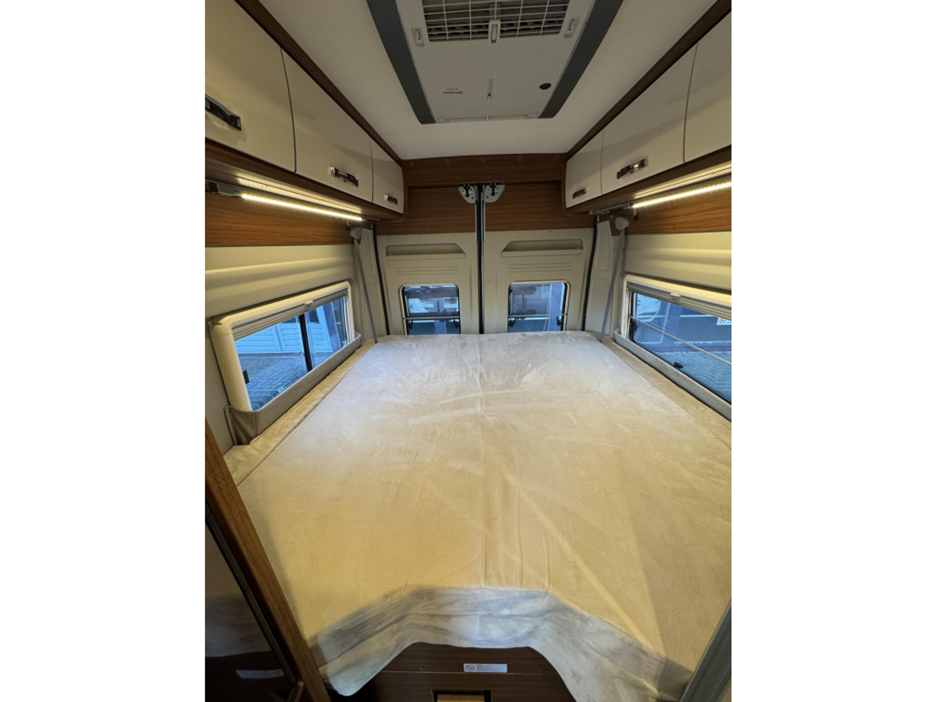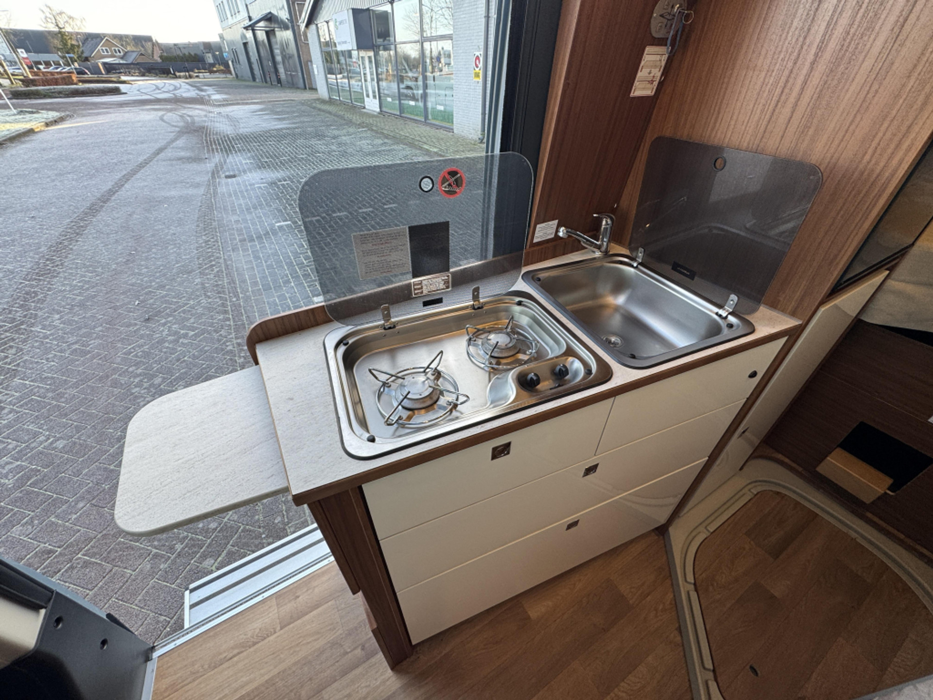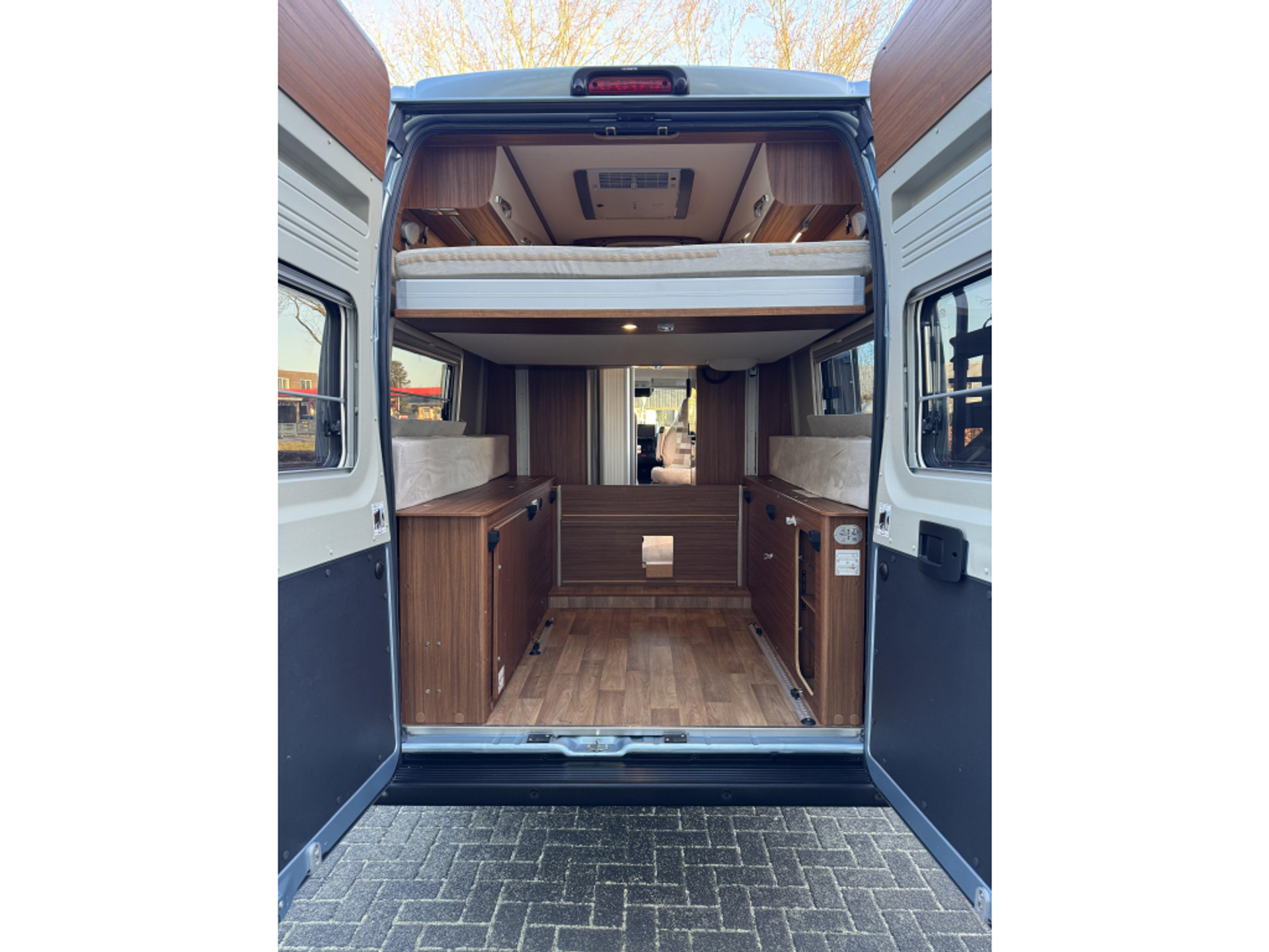 Achterin beschikt de camper over comfortabele lengtebedden die elektrisch in hoogte verstelbaar zijn, waardoor je eenvoudig ruimte creëert voor al uw kampeerspullen. Het leefcomfort wordt verder verhoogd door de aanwezige Truma Aventa dakairconditioning, ideaal voor warme zomerdagen. Dankzij de dieselkachel en de compressorkoelkast is gasgebruik vrijwel overbodig, wat deze camper uitermate geschikt maakt voor vrij en flexibel reizen, ook buiten de campings om.