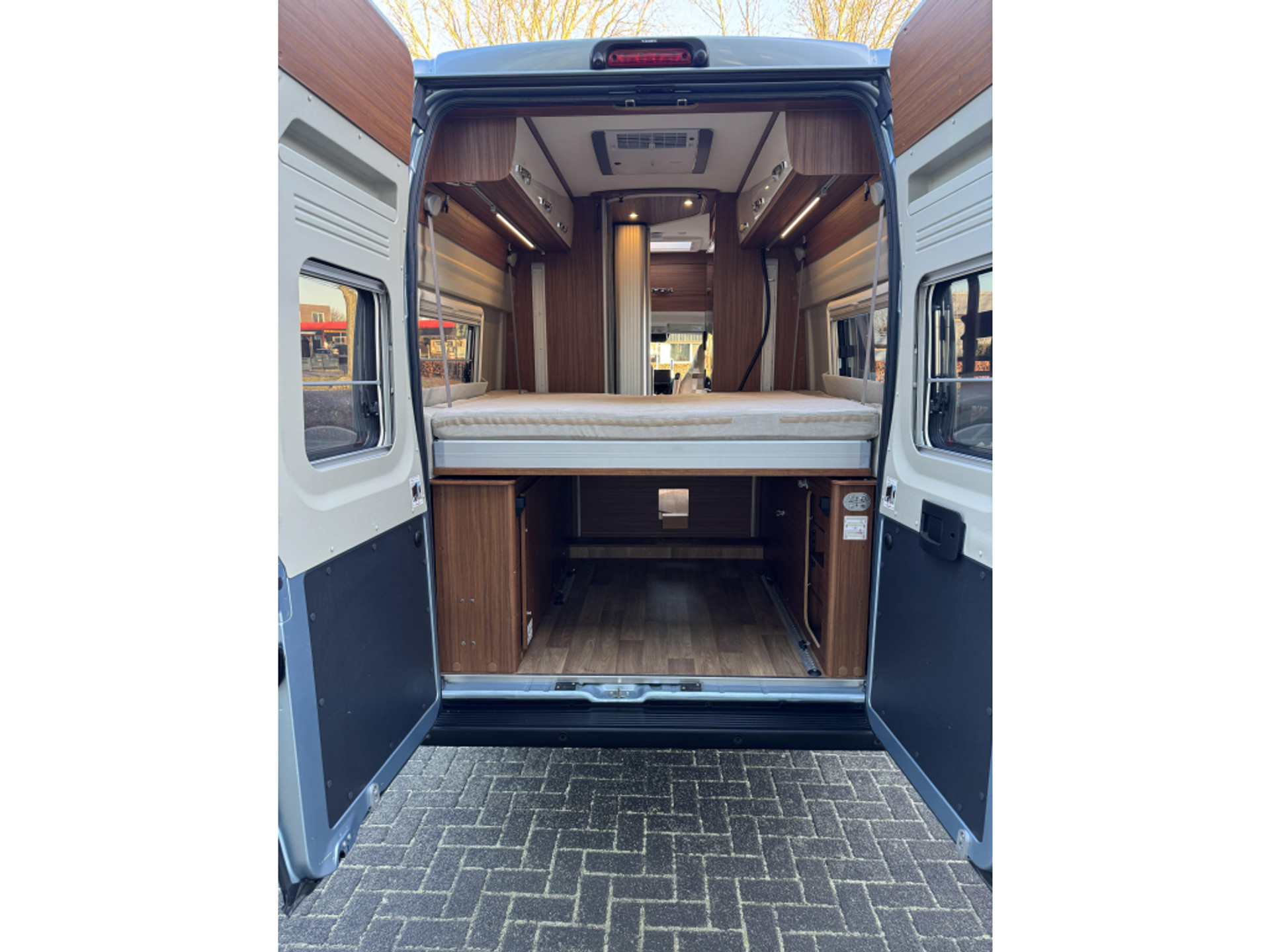 Daarnaast is de camper voorzien van een fietsendrager, luxe Alpine multimediasysteem met groot scherm en een softclose schuifdeur.