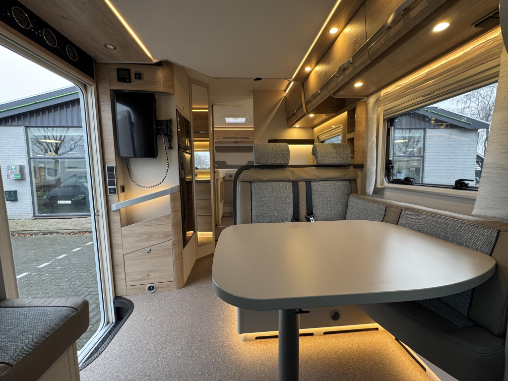 De Dethleffs Pulse is uitgerust met lengtebedden voor optimaal slaapcomfort, evenals een hefbed voor extra slaapplekken wanneer dat nodig is. De gezellige L-zit zit maakt het mogelijk om met familie of vrienden in te dineren of ontspannen. Het ruime interieur wordt aangevuld door een grote garage, zodat je al je spullen makkelijk kunt opbergen. Verder beschikt deze camper over een aparte douche en apart toilet en is deze uitgerust met een luxe multimediasysteem, luchtvering en achteruitrijcamera.