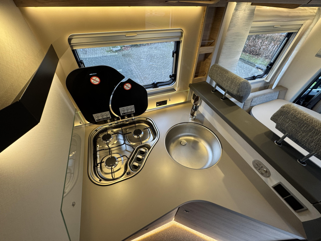 De meest luxe optie van deze Dethleffs is het automatisch hydraulisch levelsysteem, wat enorm veel gemak en comfort biedt: het zet de camper met één druk op de knop binnen mum van tijd volledig waterpas en zorgt voor een zeer stabiele stand.