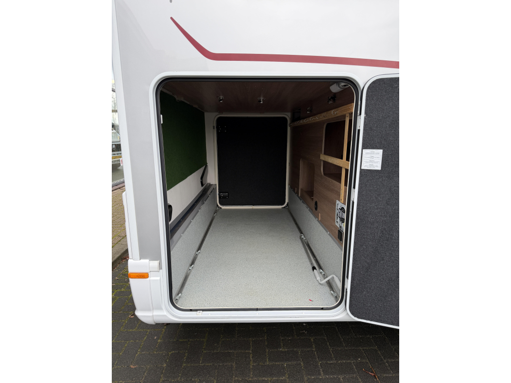 De grote garage achterin biedt voldoende opslagruimte voor al de dingen die u niet wilt missen tijdens uw campervakantie.