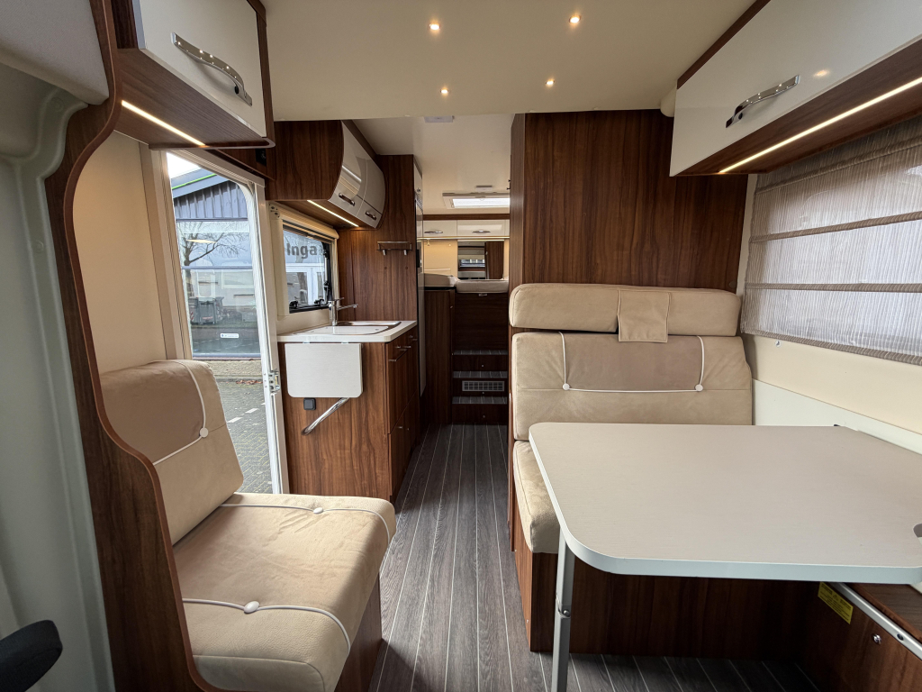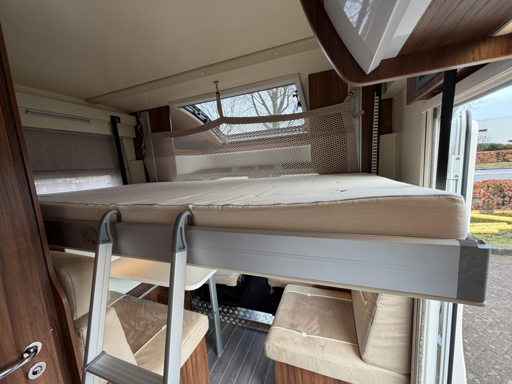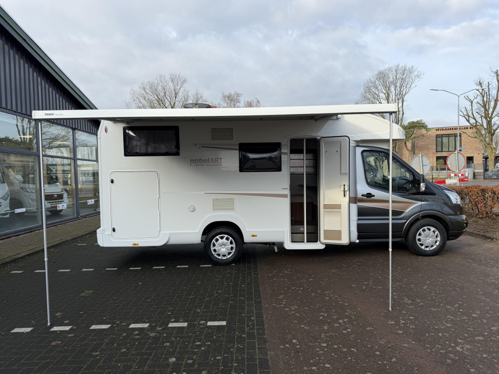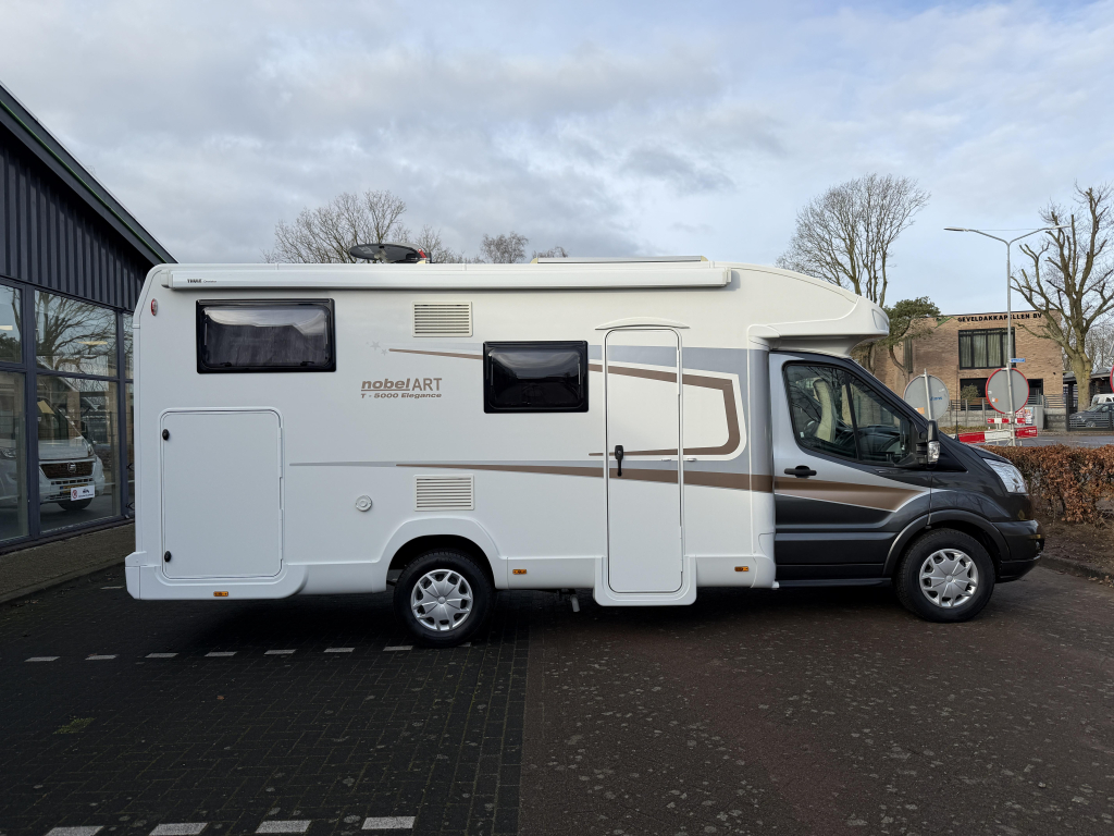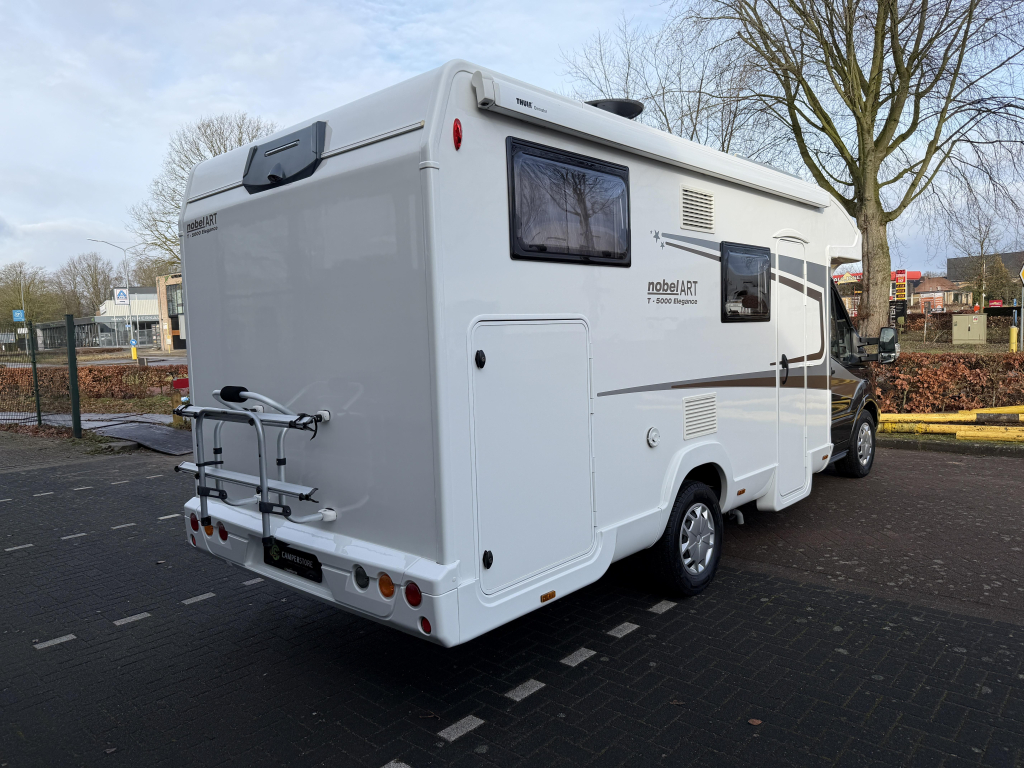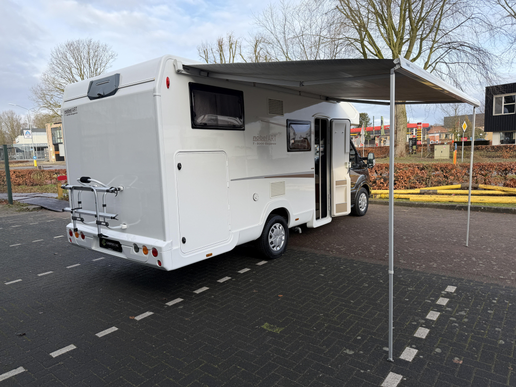 Deze Nobel Art T 5000 Elegance is een praktische semi-integraal camper uit de Trigano-groep, gebouwd met oog voor comfort en betrouwbaarheid. Met een lengte van 7 meter biedt hij een fijne balans tussen ruimte en wendbaarheid. Achterin beschikt de camper over comfortabele lengtebedden, terwijl het hefbed extra slaapplaatsen creëert zonder leefruimte in te leveren. De camper staat op kenteken voor 5 personen, waardoor hij geschikt is voor gezinnen of wie graag met meerdere personen reist. Dankzij het aanwezige zonnepaneel is hij goed voorbereid op vrij staan en met de fietsendrager neem je eenvoudig je fietsen mee. De grote garage biedt volop ruimte voor bagage en kampeeruitrusting en is ideaal voor het meenemen van grotere spullen. Een complete en overzichtelijke camper die geschikt is voor zowel korte trips als langere reizen.