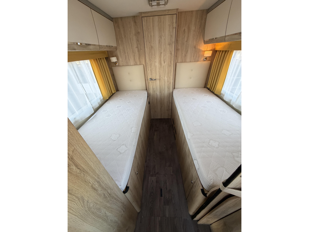 Binnen vind je twee comfortabele, losse enkele bedden die zorgen voor veel slaapruimte en flexibiliteit. Achterin is de badkamer geplaatst, wat zorgt voor een prettige indeling met voldoende privacy en bewegingsruimte. De Alde verwarming staat garant voor een gelijkmatige, aangename warmte, ook tijdens koude reizen, en draagt bij aan het luxe wooncomfort waar Eura Mobil om bekendstaat. De luchtvering verhoogt het rijcomfort. Met de aanwezige trekhaak neem je bovendien probleemloos fietsen of een aanhanger mee.