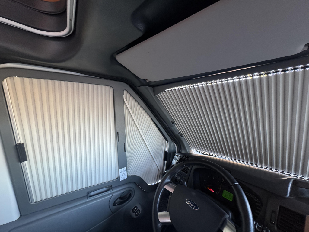 - Alle ruiten/ dakluik en in campergedeelte zijn voorzien van horren en verduistering