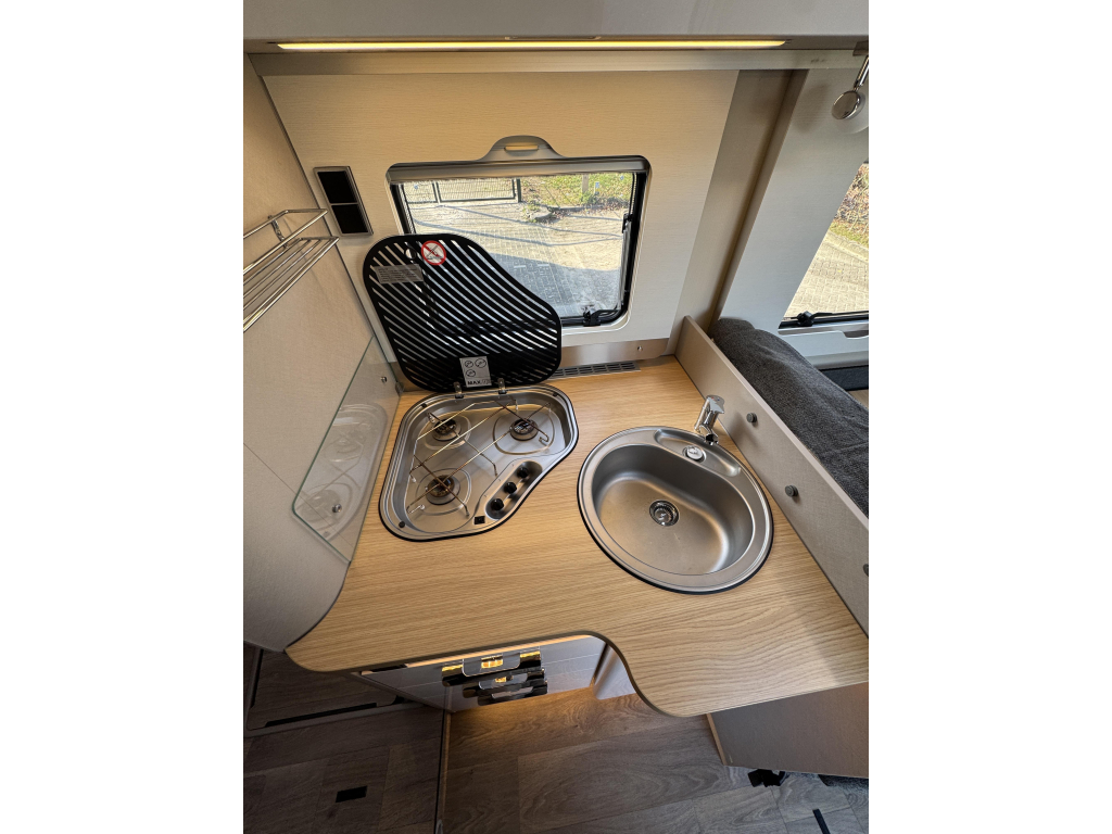 De Hymer beschikt over een verwarmingssysteem op brandstof. Hierdoor heb je geen grote gasflessen nodig en enkel gas nodig voor het gasfornuis.