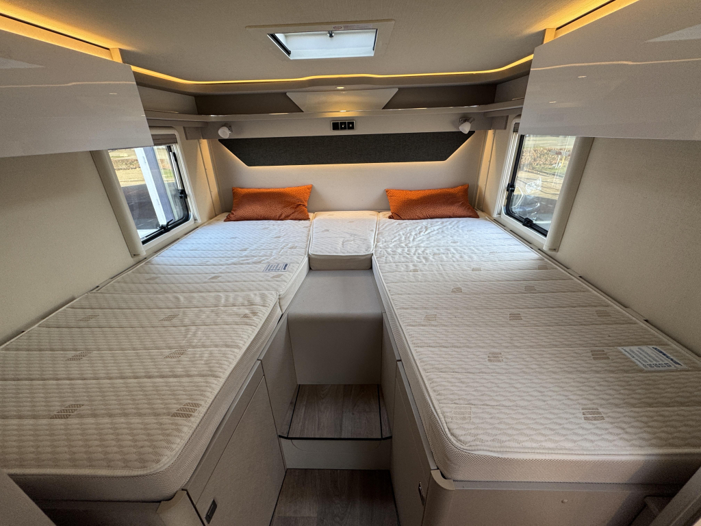 - Extra kussens tussen de twee eenpersoonsbedden in de lengterichting inclusief geïntegreerde comforttrap