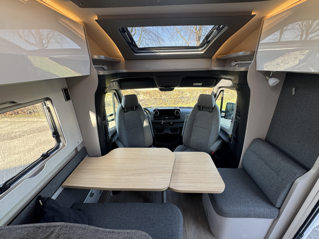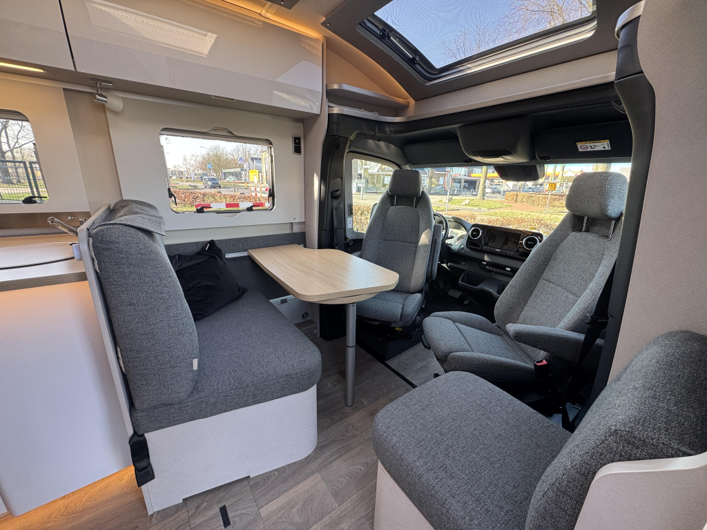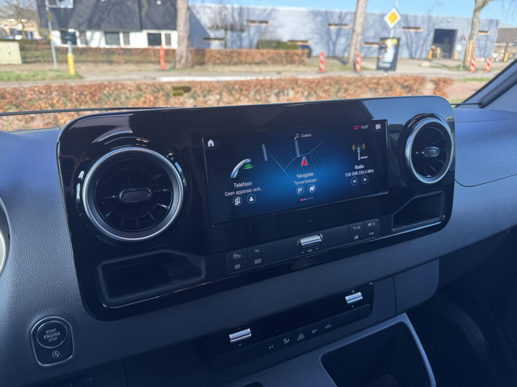 Het dashboard/ cabine beschikt over het luxe Mercedes MBUX multimediasysteem incl. navigatie met bediening op stuurwiel, DAB, touchscreen en achteruitrijcamera, clima control, bestuurders en bijrijdersairbag, elektrisch bedienbare spiegels en ramen.