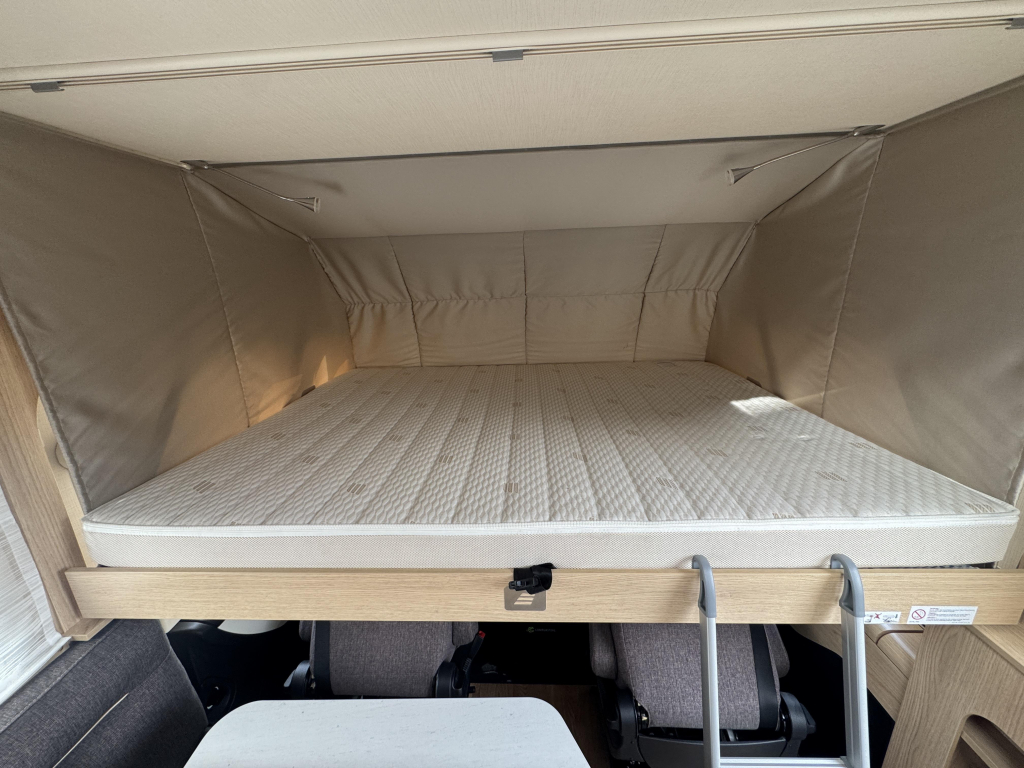 De camper heeft vele luxe opties. Zo beschikt deze over een fietsendrager met elektrische lift, een afneembare trekhaak, omvormer 1700W, twee huishoudaccu’s en nog veel meer.