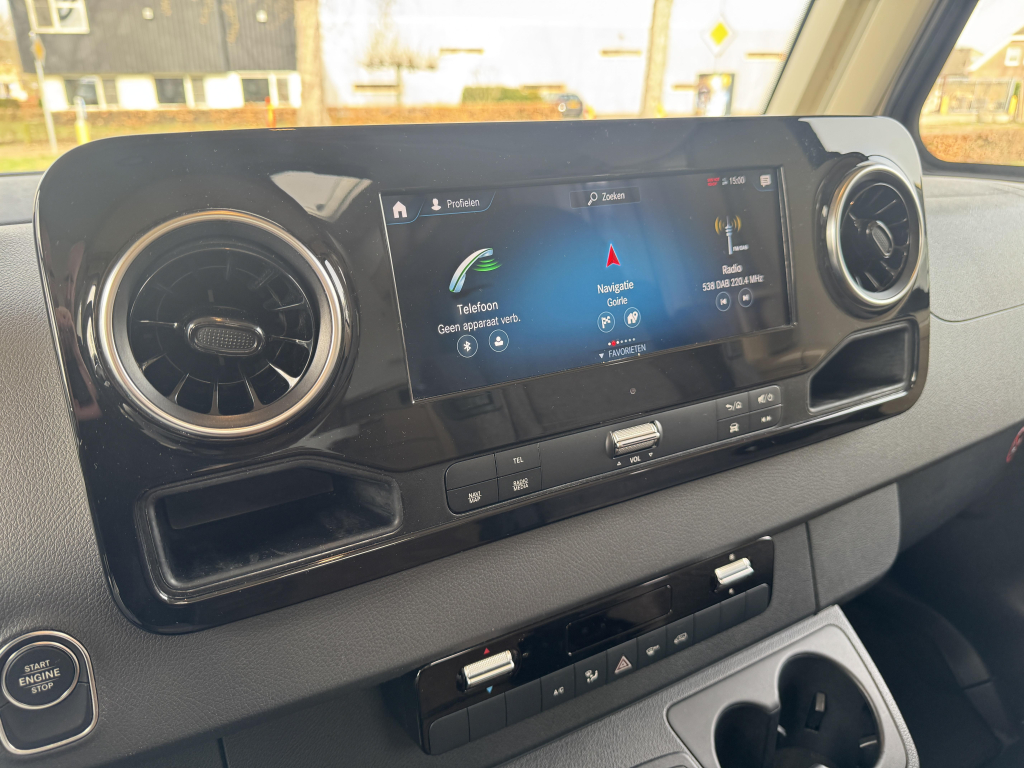 Het dashboard/ cabine beschikt over het luxe Mercedes MBUX multimediasysteem incl. navigatie met bediening op stuurwiel, DAB, touchscreen en achteruitrijcamera, clima control, bestuurders en bijrijdersairbag, elektrisch bedienbare spiegels en raam.