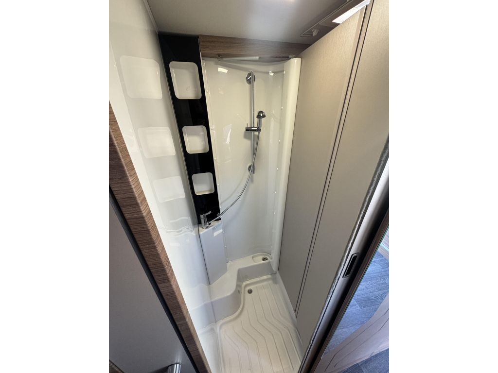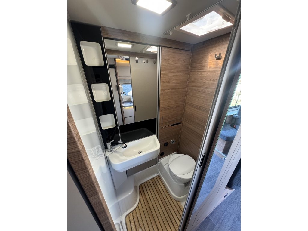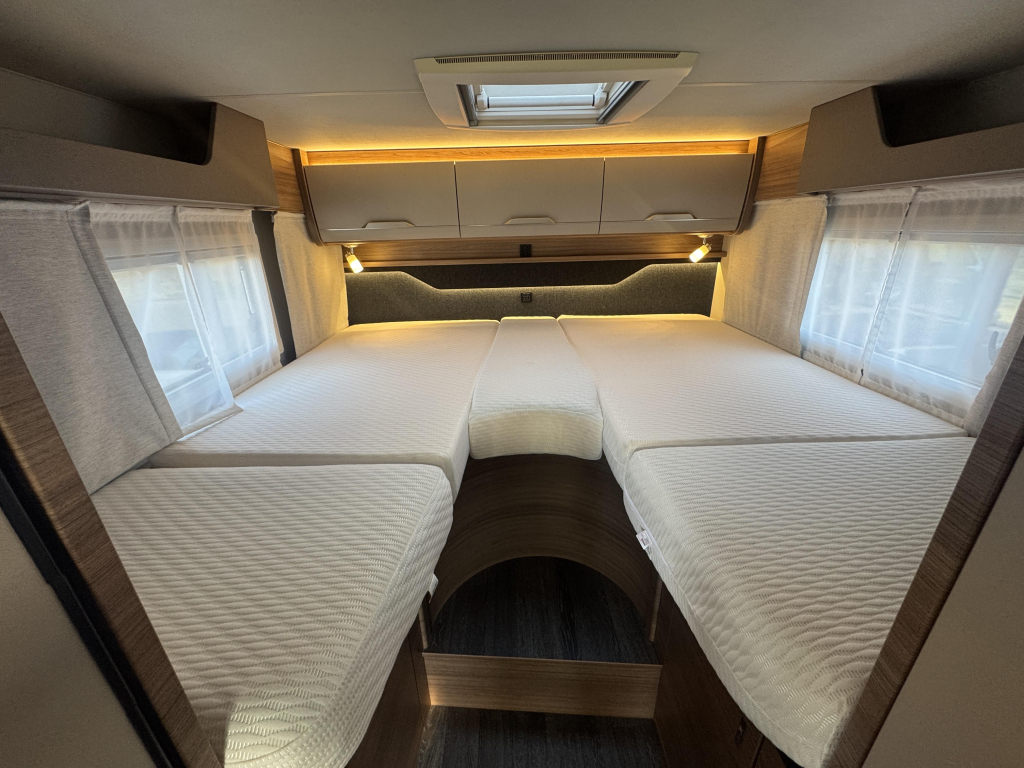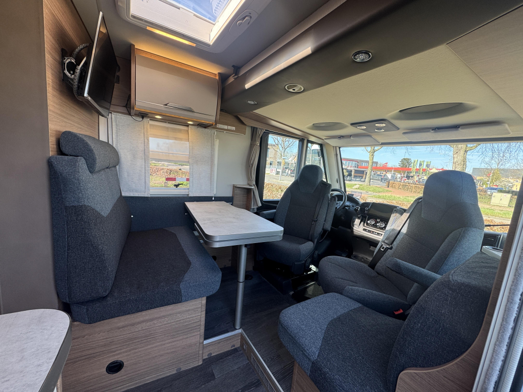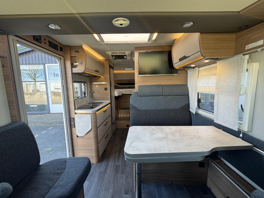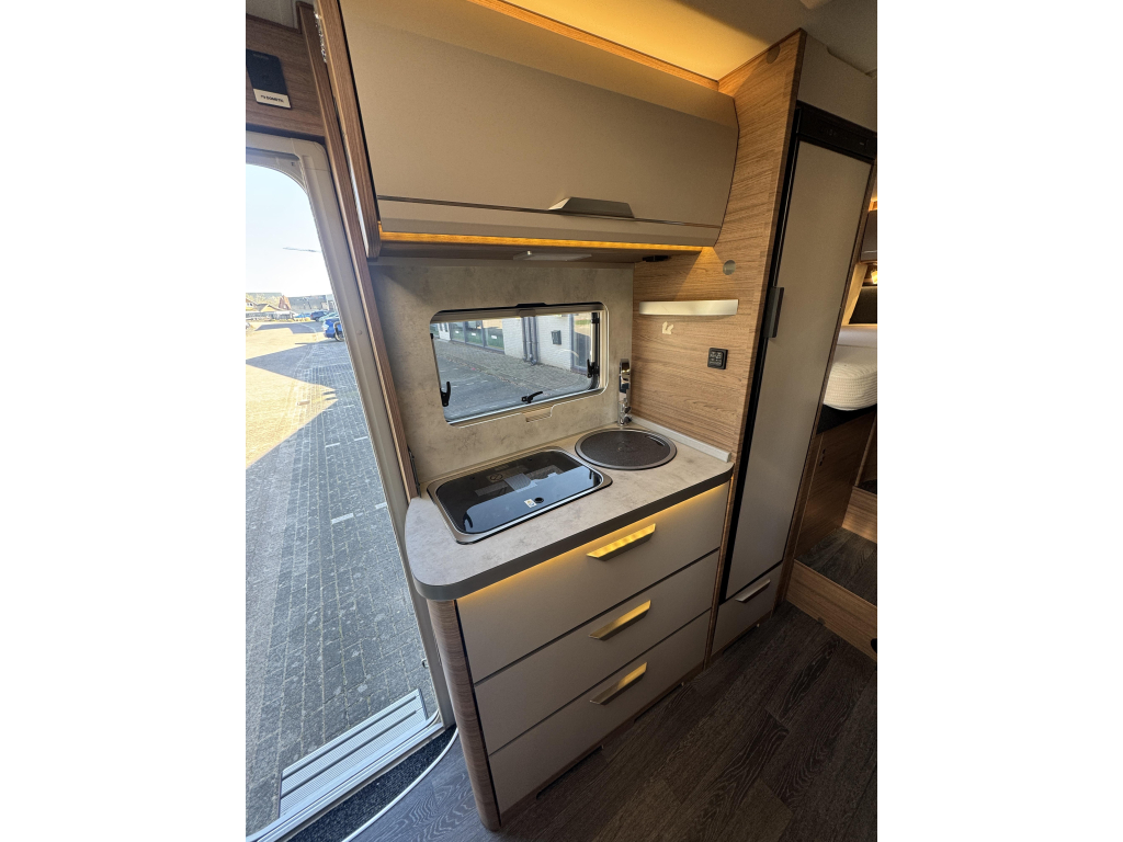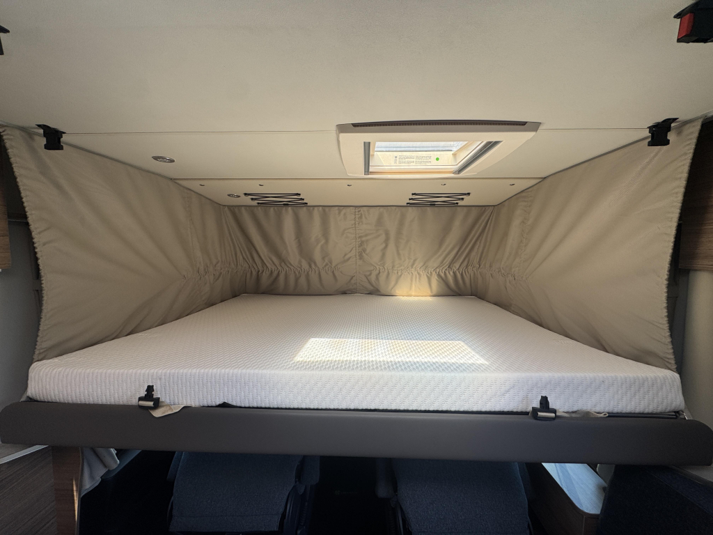 De camper is voorzien van een zeer uitgebreide optielijst die het reiscomfort naar een hoger niveau tilt. Zo beschikt hij over een automatisch levelsysteem, waardoor u op iedere plek binnen no-time perfect waterpas staat, en een dakairco die zorgt voor een aangenaam binnenklimaat, ook tijdens warme zomerdagen. De luchtvering draagt bij aan een optimale wegligging en extra rijcomfort.