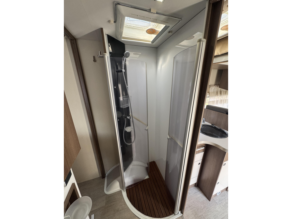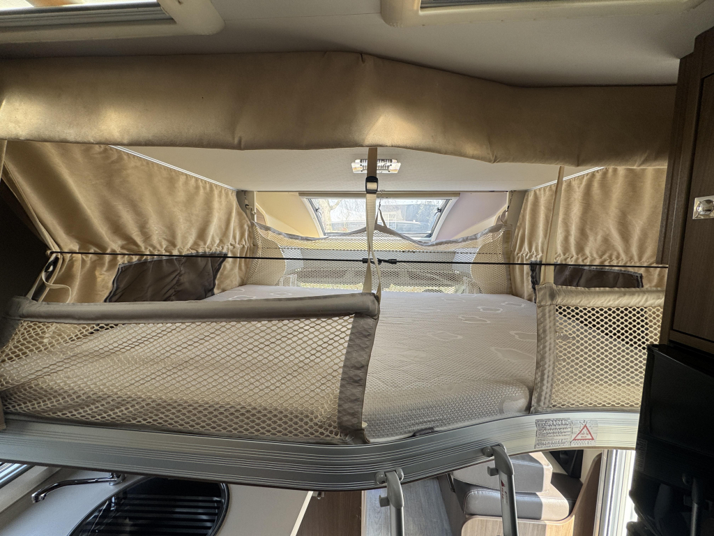 De Challenger Genesis 388 EB biedt u een helder design, doordachte functionaliteit, royaal queensbed en een hefbed.