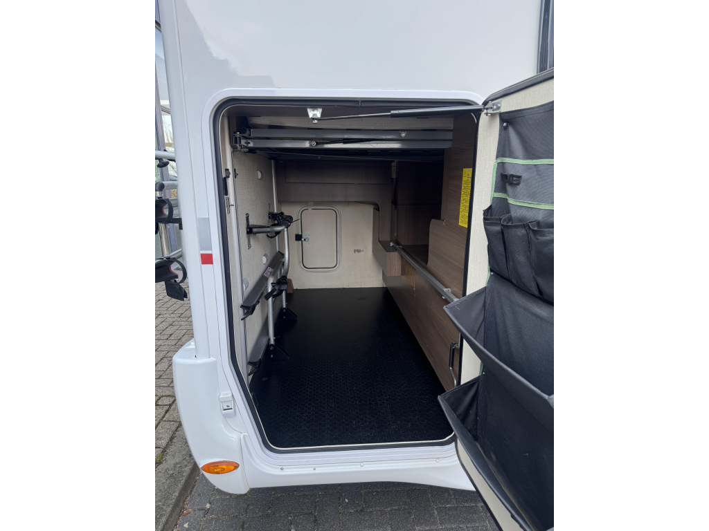 De garage achterin biedt voldoende opslagruimte voor al de dingen die u niet wilt missen tijdens uw camper-vakantie.