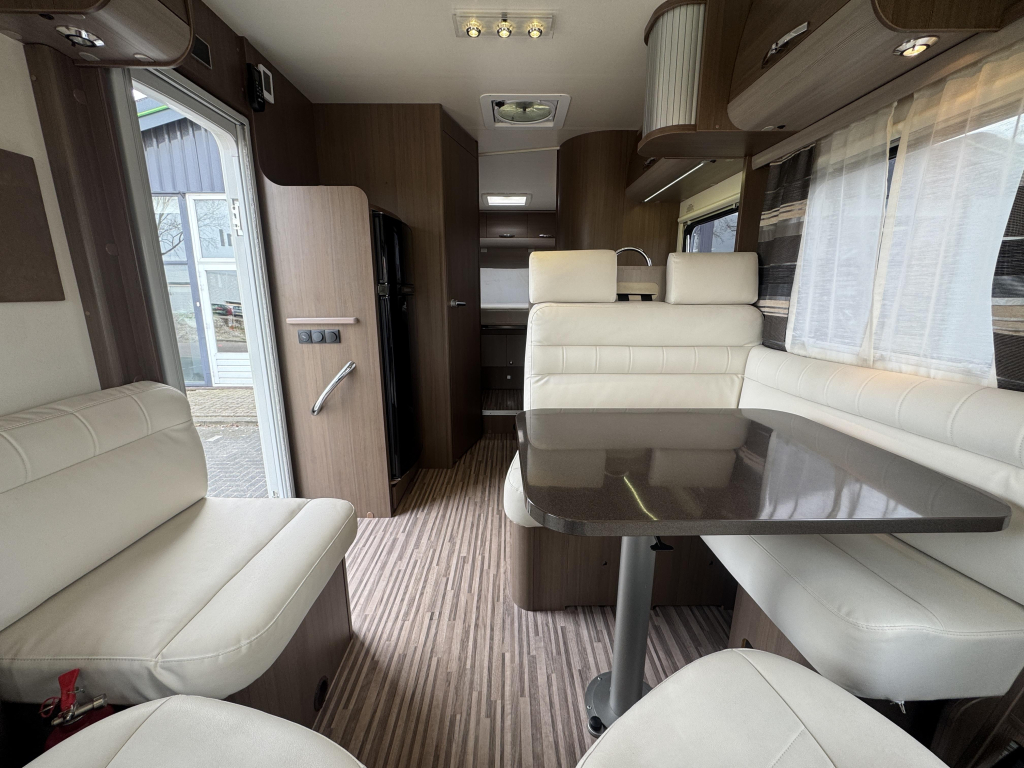 - Gezellige L- zit met panorama dakluik en draaibare pilotenstoelen, dubbele armleuningen in hoogte verstelbaar