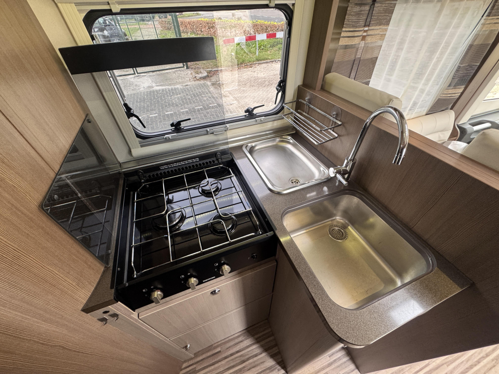 De gezellige woonkamer met L-zit brengt een groot gevoel van ruimte wat tevens wordt versterkt door de lichte bekleding en verlichting. Het queensbed heeft een royale afmeting en daarnaast beschikt de Adria ook nog over een ruim tweepersoons hefbed.